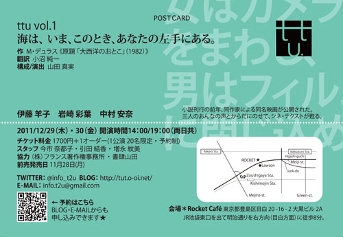 このたび旗揚げ公演にあたって、M・デュラスという仏の劇作家・小説家・映画監督・・・の短編小説「大西洋のおとこ」をチョイスしたのですが、理由は単純です。